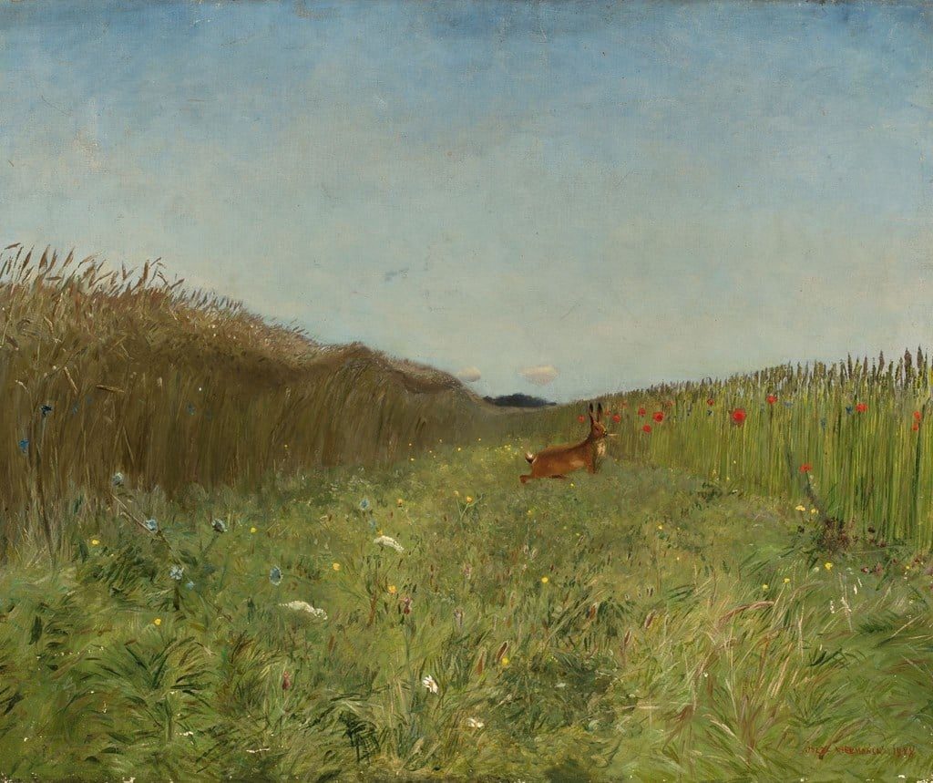 Ilustr. Józef Chełmoński „Zając wśród zboża”, 1888 olej, płótno 58 x 72 cm
